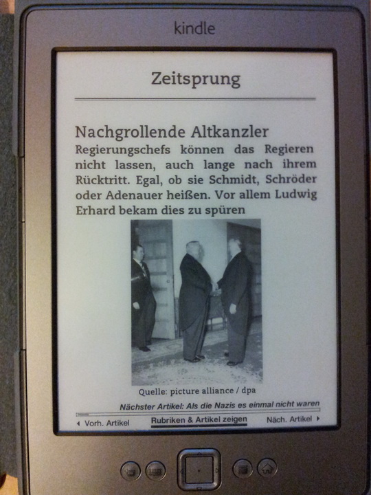 Anbei ein paar Abfotografien der WELT auf dem Kindle.