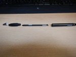 Trotz der Vorteile, schnelle Notizen anfertigen zu können, ist der Stift an sich für eine gute Handhaltung jedoch zu klein geraten. Für den Pocket Loox von Casio gab es damals ausziehbare Stifte, die besser in der Beuge zwischen Daumen und Zeigefinger lagen.