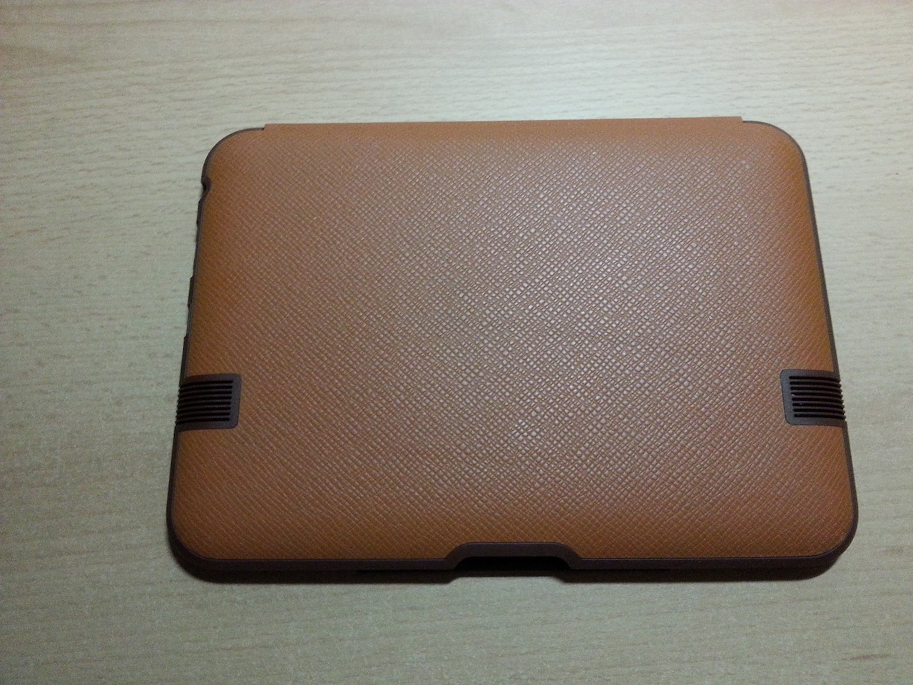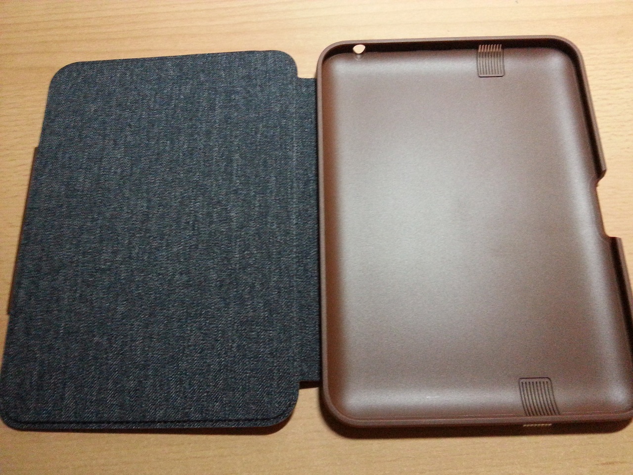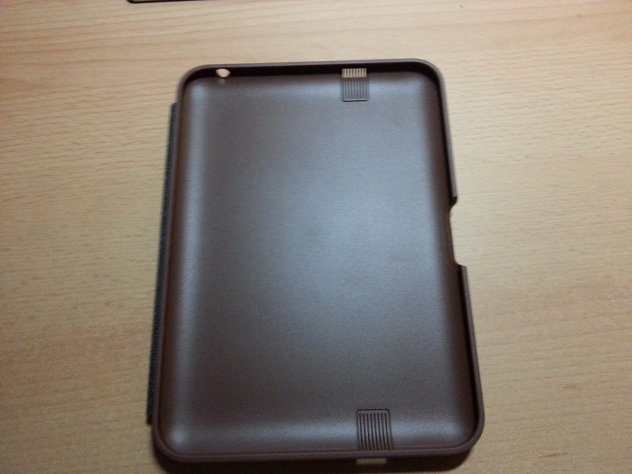 Beworben wird eine Ledertasche mit Stand und magnetischem Wake-up-Cover. Gekommen ist etwas, das ohne Gerät erstmal ziemlich labberig wirkt. Der Schnüffeltest ergab, dass es sich bei dem Obermaterial um alles andere als Leder handelt. Tatsächlich ist die Tasche geruchsfrei.