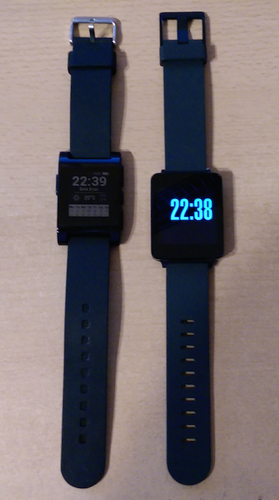 Die G Watch jedoch muss zwingend vor dem Zubettgehen auf die Ladeschale. Sicher hält der Akku der G Watch auch 1 1/2 Tage, doch davon hat niemand etwas. Lädt man abends nicht, weil der Akku noch 60% hat, steht die Uhr morgens bei 20% und ist spätestens um 10 Uhr leer. Und da sie wegen der IP67-Spezifikation (Wasserdicht und staubgeschützt) nicht an herkömmlichen Micro-USB-Kabeln geladen werden kann, sondern einer Kontaktladeschale benötigt, hat man dann eben nur noch einen schwarzen Bildschirm am Handgelenk baumeln.