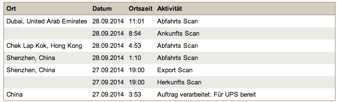 Gestern kam jedoch die erfreuliche Nachricht, dass das iPhone 6 verschickt wurde. Dem UPS-Tracking nach kommt es direkt aus Shenzhen, China.